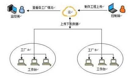 云端与服务器相连,工厂管理者无需再设置管理人员进行程序再次分发,可直接设置多种权限,各权限人员互不影响,而管理者随时可对被分发者进行监控管理,随心可控。